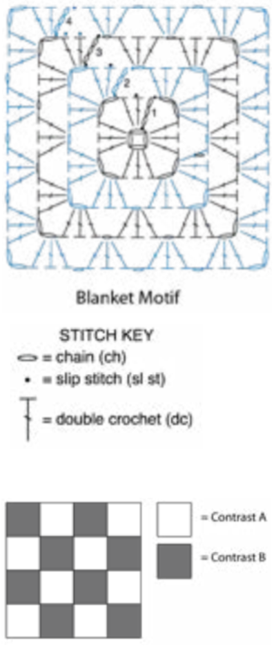 (make 8 Motifs each in Contrast A and B). See diagrams below.
