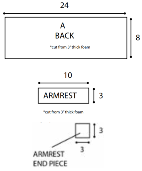 For the Foam Foundation, it says Piece A: Back one piece measuring 24" x 18". It should be 24" x 8" (as the diagram shows).