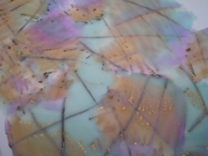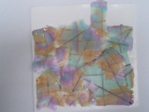 - Place translucent pieces on a sheet of White clay rolled out on a medium to thin setting, covering the white sheet completely. Burnish.