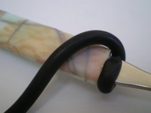 - Extrude or roll a 1/4" diameter rope from Black clay. Wrap around top edge of silverware, mending the seam where it meets.