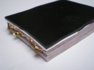 - Impress the complete mokume gane stack with a credit/gift card, dragging the Black clay down to the bottom of the stack. Compress the mokume gane stack back together. Let the distressed mokume gane stack rest.
