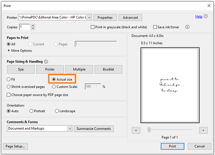 Note: when printing the PDF size of your choosing, be sure to select "actual size" from the options.