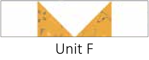 Sew a 2½” putty solid square to each side of the 2 remaining Flying Geese Units to create 2 Unit Fs.