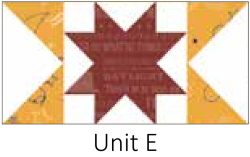 Sew a Flying Geese Unit to each side of a Corner Star Center to create Unit E.