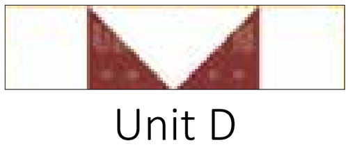 Sew a 1½” putty solid square to each side of the 2 remaining Flying Geese Units to create 2 Unit Ds.