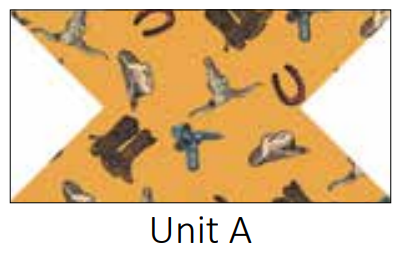 Sew a Flying Geese Unit to each side of a 4½” assorted print square to create Unit A.