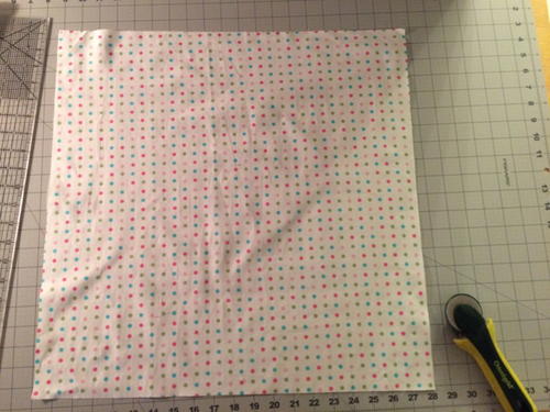 Once the quilting is finished, square up any uneven sides. The quilt should measure between 20″ square and 20 1/2″ square. If you do a lot of quilting it will shrink slightly.