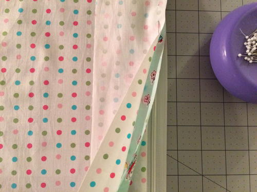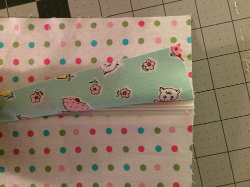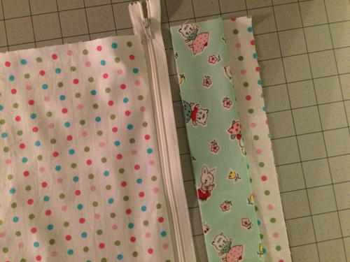 Lay each of the pieces out as pictured above, with the zipper flap and the 3″ strip aligned with the raw edges facing the zipper.