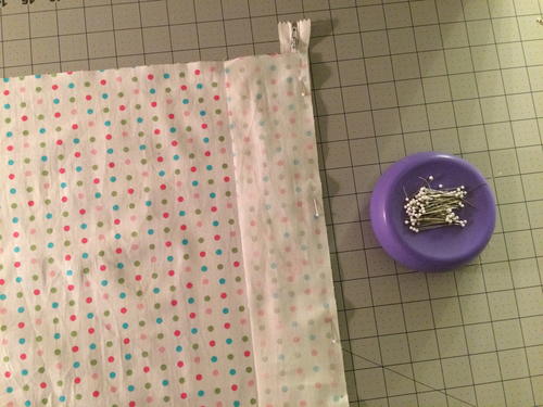 Lay the 3″ strip and the zipper flap right side on top of the zipper, aligning edges. Pin in place.
