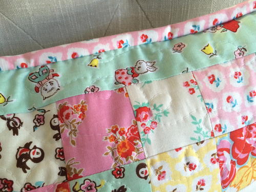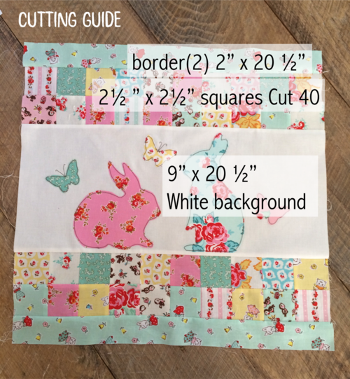 - small pieces or scraps of fabric for applique and 2.5″ square patchwork border