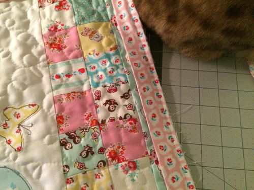 What an adorable quilt or pillow. I love the bunnies and the butterflies and the sweet little squares! I just made a pillow for someone, so I am in the pillow making mood. I must try this cutie and use some scraps of vintage style fabrics that I have laying around in my sewing room. The pastel colors are perfect for spring! I love this and it is on my "to make" list.