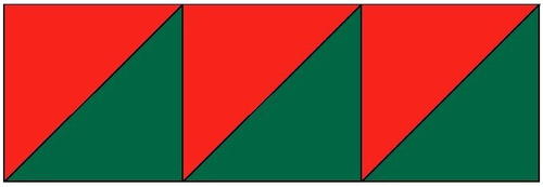 Sew 3 Green/Red HST together as shown, press towards the red.