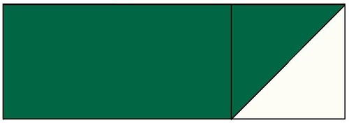 Sew the green 2″ x 3 1/2″ rectangle to the left side of a Green/White HST as shown, press to the green.