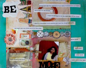The great thing about this "Be More" Scrapbook Layout is that you can use it for almost any reason or occasion. With several embellishments and crafting techniques used, this colorful and expressive layout is a creative and fun way to work through your craft stash.