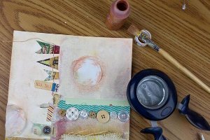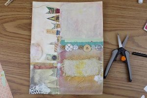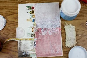 Now it’s time to bring in some texture. I used some gesso on a piece of burlap to add texture on the paper.