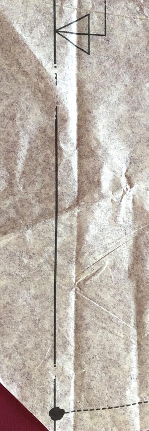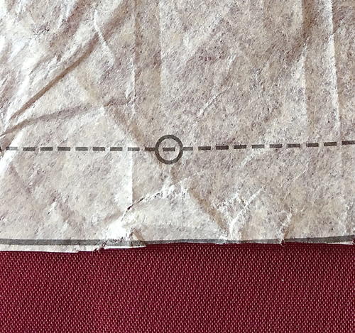 There are three small circles distributed along the bottom of the pattern piece (A). With a marker, add a fourth at the center front (B).