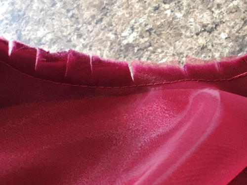 Align the top opening of the skirt with right sides facing. Sew the layers together. Trim and clip the seam allowance so the opening will lay in a flat curve.