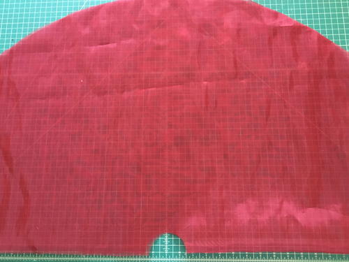 Fold the organza fabric in half with the selvage edges together. Lay the pattern on the fold and cut it out. Slit open the center back as indicated on the pattern. Cut the fleece the same way.