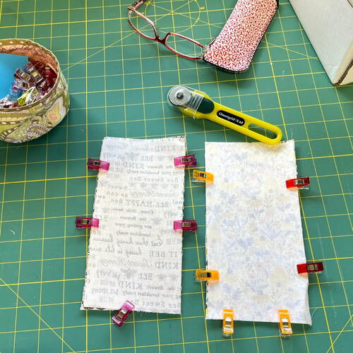 Place your fabric for the outside of your pouch right-sides together. Clip pieces together with mini clips or pins.