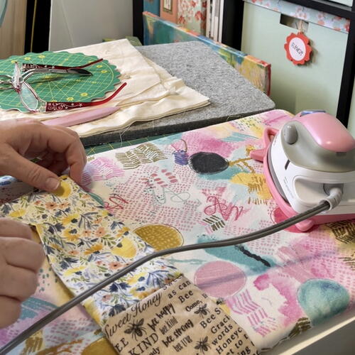 Turn fabric right sides out. Make sure to push those corners out. Press fabric with a nonstick pressing cloth.