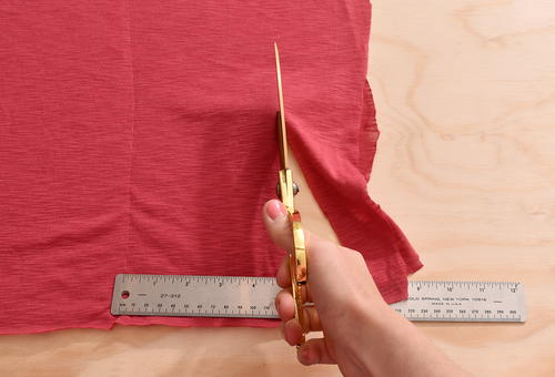 Cut any extra fabric off of the bottom edge that’s parallel to the bottom hem of the shirt so it’s straight and tidy-looking.