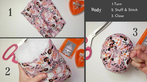 "Everybody loves Gnomes! This little guy has a soft squishy nose, and pleated ruffle hat. No pattern is needed - if you can cut rectangles, circles and triangles - you’re good to go! You’ll even learn how to make simple, folded box corners so the gnome will sit flat for you. I’ve used some adorable Halloween themed fabrics by Clothworks but these little guys make great gifts or décor for any Holiday!"