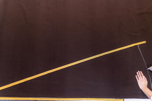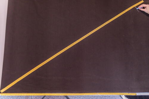 From one of the corners where the fabric is folded on itself, place a measuring tape and mark with a pin or chalk a length of 55 inches (140 cm) or the width of the fabric you chose.