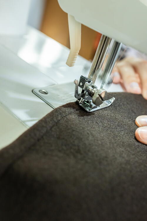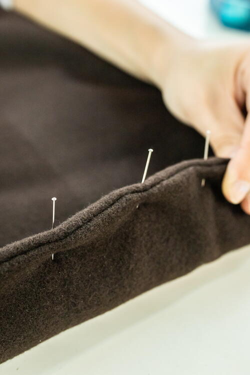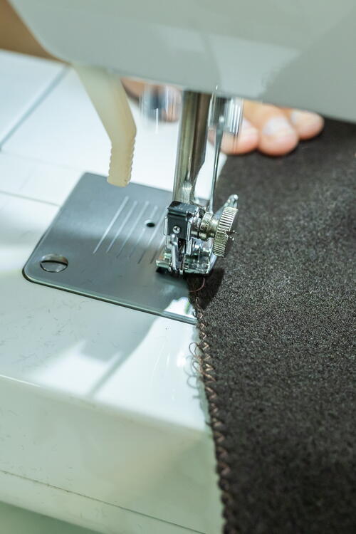 Using an overlock or narrow zigzag seam, sew the bottom hem so that the fabric does not fray.