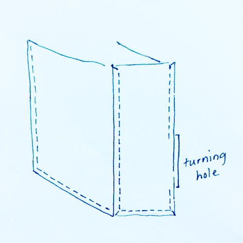 On the second side, stop stitching 2” up from the bottom and back stitch. Leave a 3” gap, and resume stitching to the top. This will be your turning hole when you finish the bag. When you finish stitching, clip the corners to reduce bulk. -
