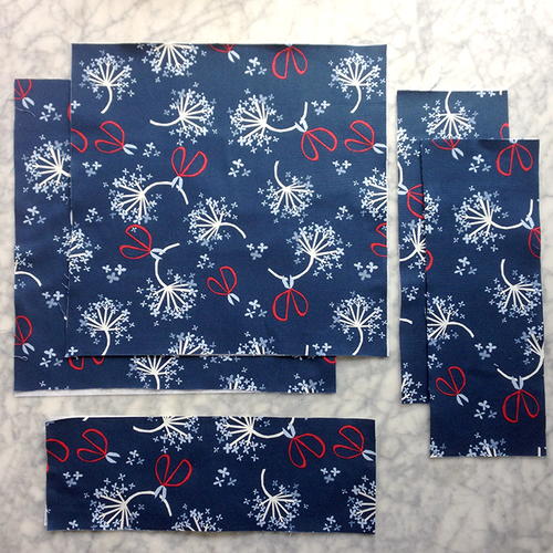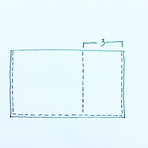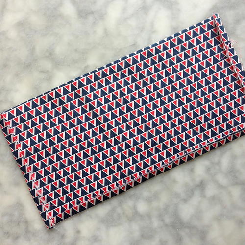 Prepare the inside pocket: fold your 10x10” square in half, with the fold at the top. Press side and bottom edges 3/8” to the wrong side.