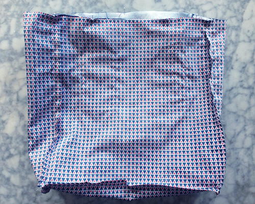 Repeat on the back side of the bag, making sure that the webbing is in the same position as it is on the front side. -