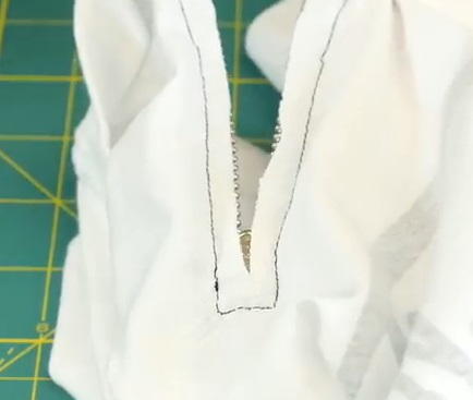 Pin it in place. In this example, pin just outside the collar and downward, towards the underarm.