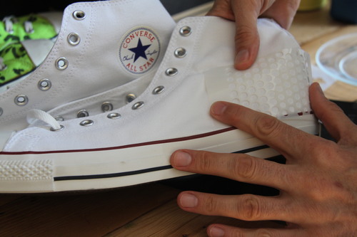 Stencil the other sneaker. We sort of stenciled in dots here and there to give a feeling of motion.