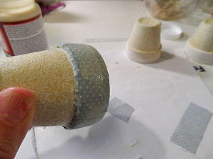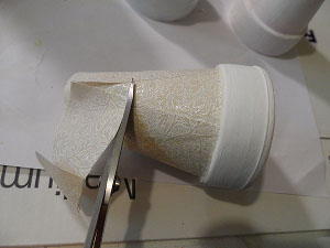 Decoupage ivory fabric onto the sides of the clay pot.