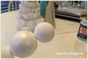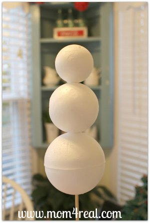 The wood skewers poke right through the styrofoam to make the perfect snowman body.