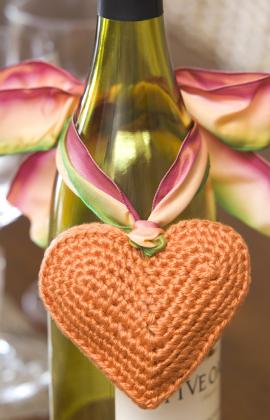 Giving a bottle of wine for a house warming gift? Decorate the bottle with this heart wine charm from Red Heart Yarn. You can work it up in only five rounds with this free crochet pattern so make many of them to have on hand.