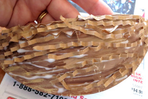 - To give the nest texture, glue on the shredded basket filler. Keep applying until your nest is well-covered.