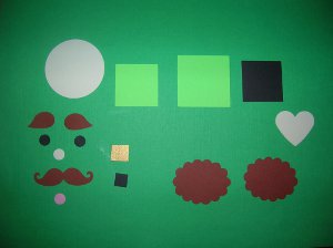 Glue pink circle behind the mustache and then glue them in place. Glue the circle in place for the nose. Round the corners of the small square and the rectangle. My rectangle was a little small so I recut a larger one.
