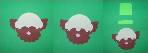 Glue beard to face. Glue ears behind the head. Glue hair on behind the ears.