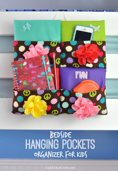 This pocket organizer is perfect to hold a phone, small journal and pencil, retainer, and so much more. You can customize to your child's room decor.