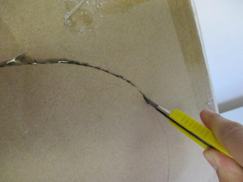 Use a razor blade to cut a rough shape from the side of a cardboard box. Make sure it is a bit bigger than your jar arrangement. Take the piece of the cardboard and place your jar arrangement on it. Cut around the jars in a circle, but don't cut quite the whole way through the cardboard. Then take the cardboard out from underneath and stand it up on its side to cut the rest of the way through.