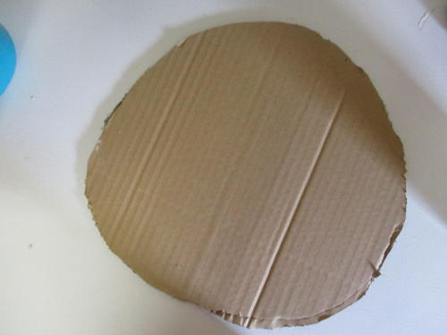 Place the jars and the duct tape back on the cardboard and cut off any extra that's sticking out. If you want to, you can take the jars off again and try to make sure the cardboard looks circular, but it doesn't have to be perfect. (Just don't do like I did and cut the circle too small so that the wider jars were sticking a little bit off the edge.)