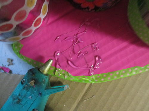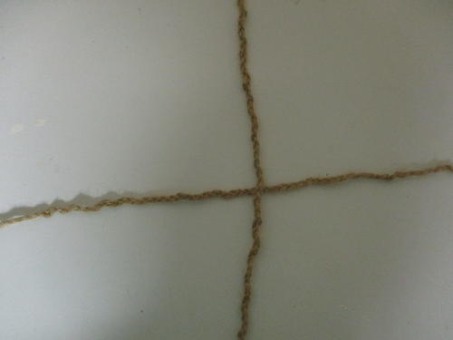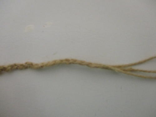 Making the handle is probably the most boring and time consuming part. Cut three strings of twine each 65 inches long. Hot glue them together at the top. Then braid them down to the bottom and hot glue the ends together. Repeat with three more strings the same length.