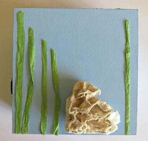 - Add the piece of coral and sea weed to the back panel. Hot glue the coral in place.