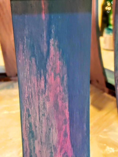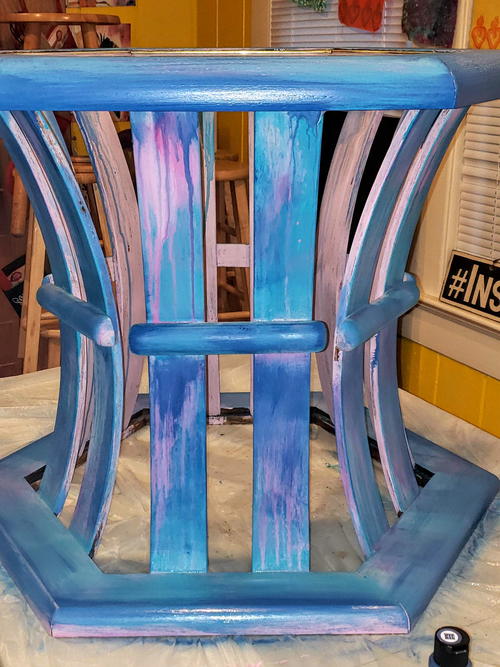 I then added Cascade and Nautical (blues) mixed together and randomly painted areas on the table.