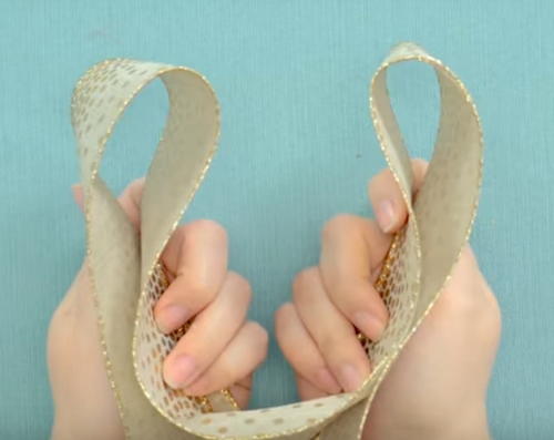Taking care as to which side of the bow will be the outside, create two "bunny ear" loops as close to the middle as possible, like tying your shoelaces. The size of the loops will determine how big the bow is.
