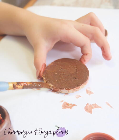 Once the rounds are dry, glue the smaller one on top of the large one using a hot glue gun (or all purpose glue for older children)