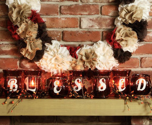 A very clever idea and great instructions! I am wondering how this would work with other fabrics instead of burlap. You could even sparkle this up some more by gluing some tiny little rhinestones here and there in the votive glass container. In addition to the word 'BLESSED' you could also select other meaningful words too, of course, such as family, peace, joy, thanksgiving, etc. or even the name of a family or newly married couple! Fun project!