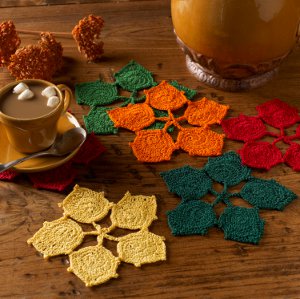 Decorate your Thanksgiving table with these colorful and fun Dancing Leaves Coasters. Mix and match colors to create the look of falling leaves on your table. You can also place these colorful crochet coasters under pillar candles, small serving dishes, or just spread them out on your table for a fun decoration that's sure to last you for years to come.