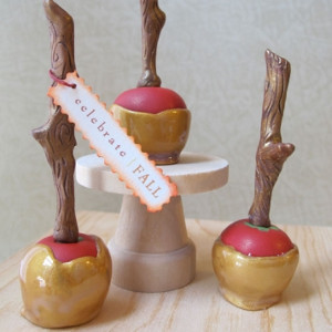Celebrate autumn with these festive fall craft ideas. These Marvelous Clay Caramel Apples would make an adorable decorative fall display or centerpiece idea. They could also be used as name cards or hostess gifts for Thanksgiving. Everyone will be an awe of these little clay creations. These craft ideas for fall really do look good enough to eat. Although they aren't edible, these Marvelous Clay Caramel Apples are sweet to look at and to share with friends as little homemade surprises.